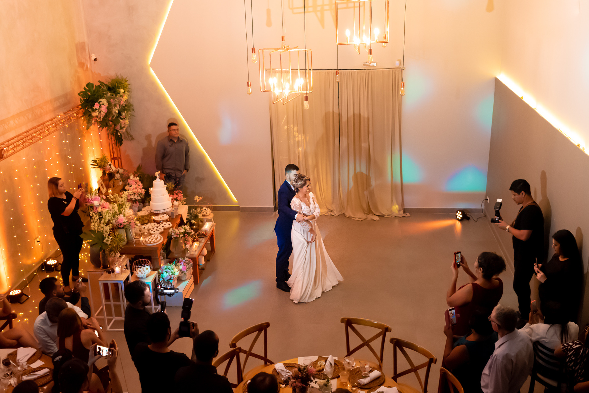 Com assessoria, fotógrafos, equipe apostos e ao comando do Dj, com a música de entrada escolhida pelos noivos recebemos a família, amigos e os sonhadores da noite que com uma alegria contagiante fizeram do MINI um super Wedding para ficar na história. Durante todo o evento, já de tênis no pé e com seu amado Príncipe, nossa Noivinha voltava a essência de uma eterna Debutante – APROVEITAR a FESTA.