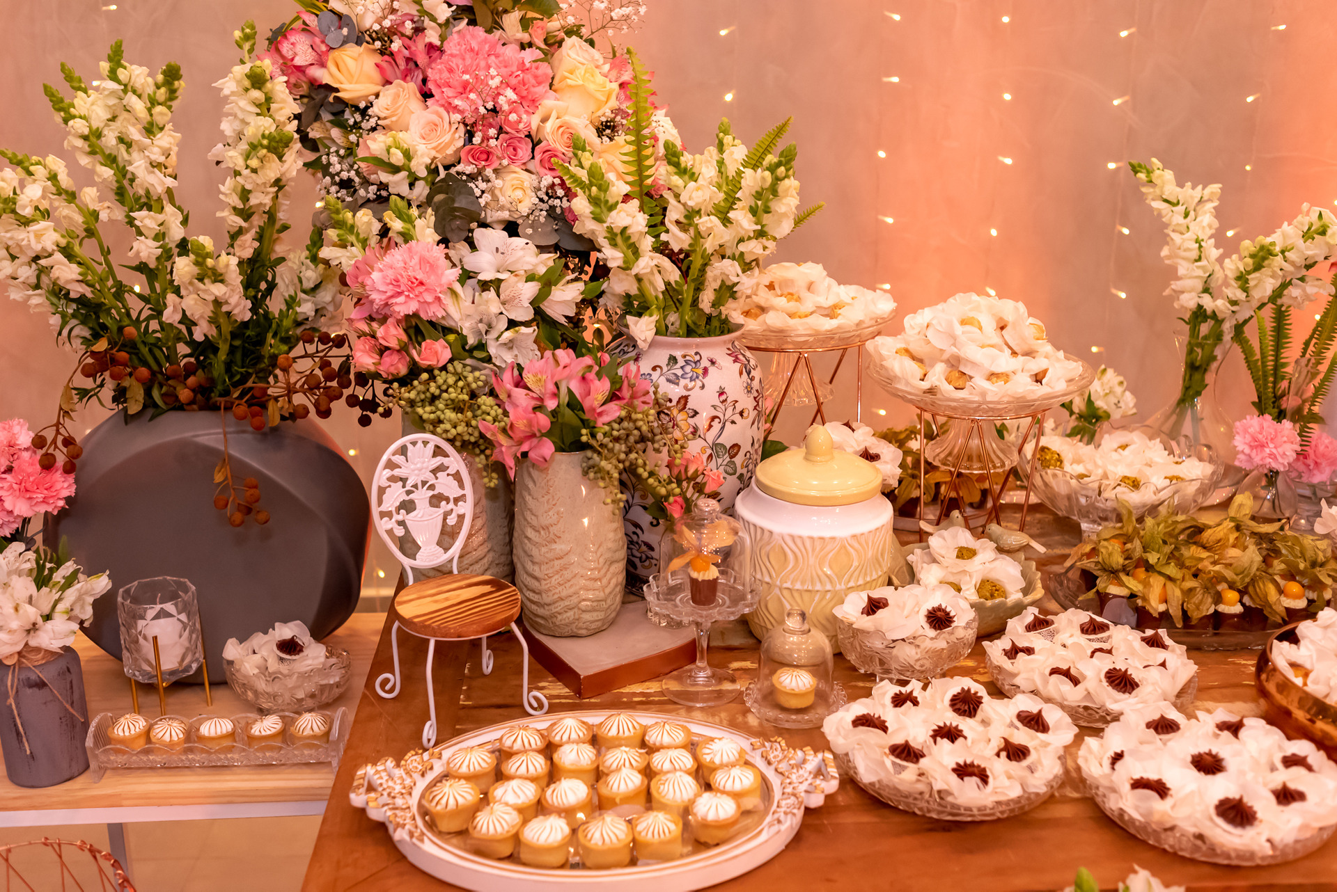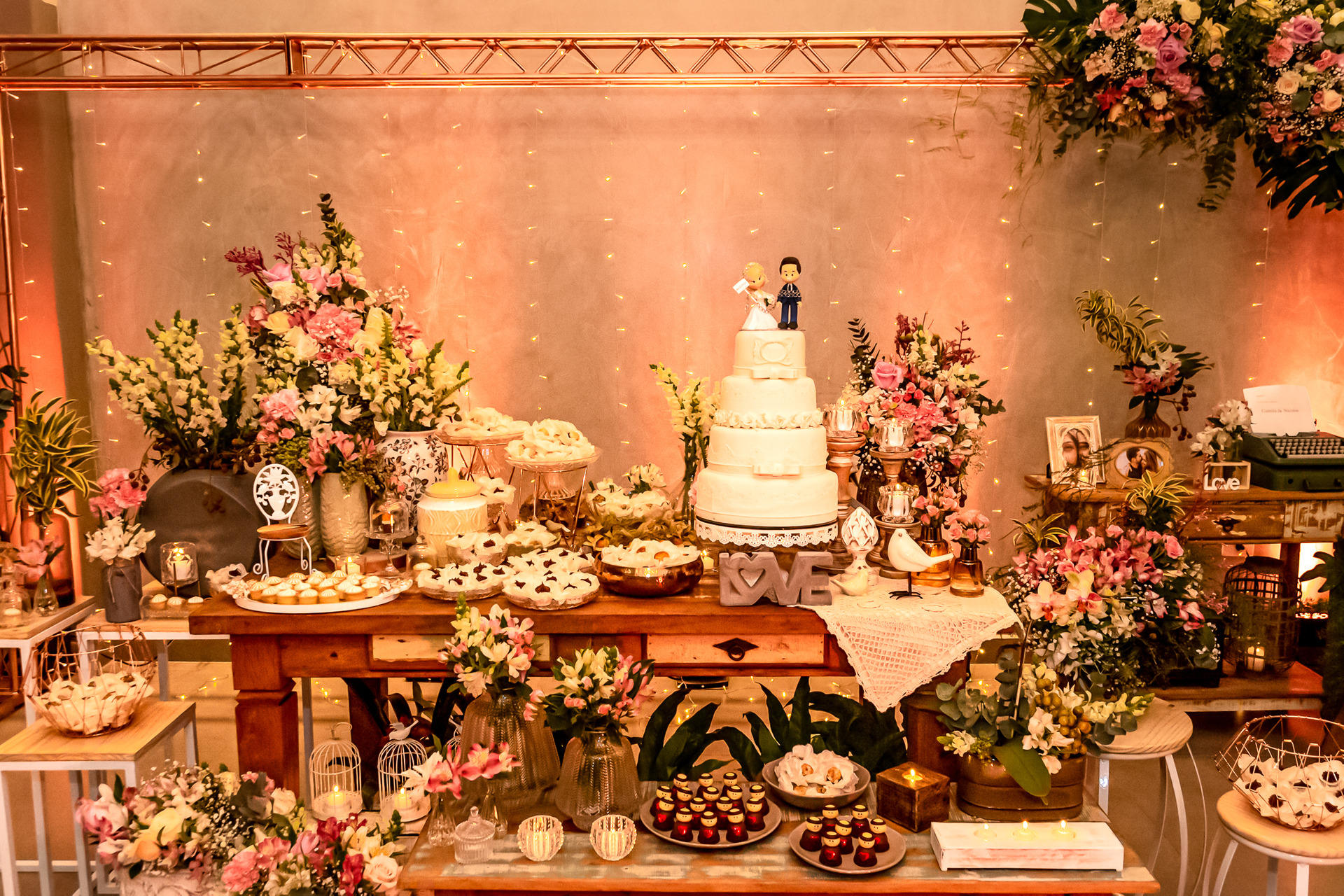 Falando em delícias... na Mesa Principa, além de muitos doces, flores, peças decorativas super charmosas e o brilho das luzinhas foram o conjunto para uma atmosfera únic, que abraçou todo o glamour da modernidade que o espaço já oferece.