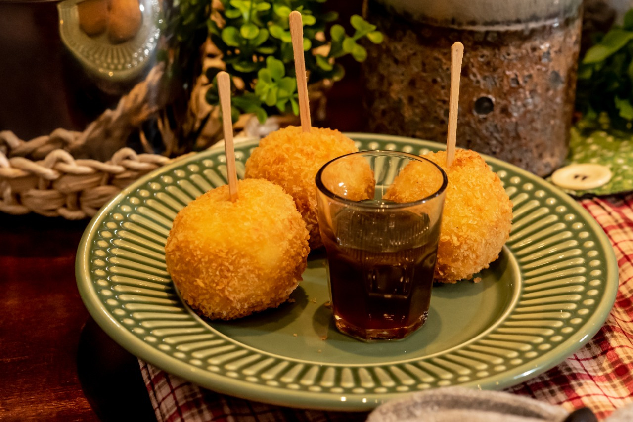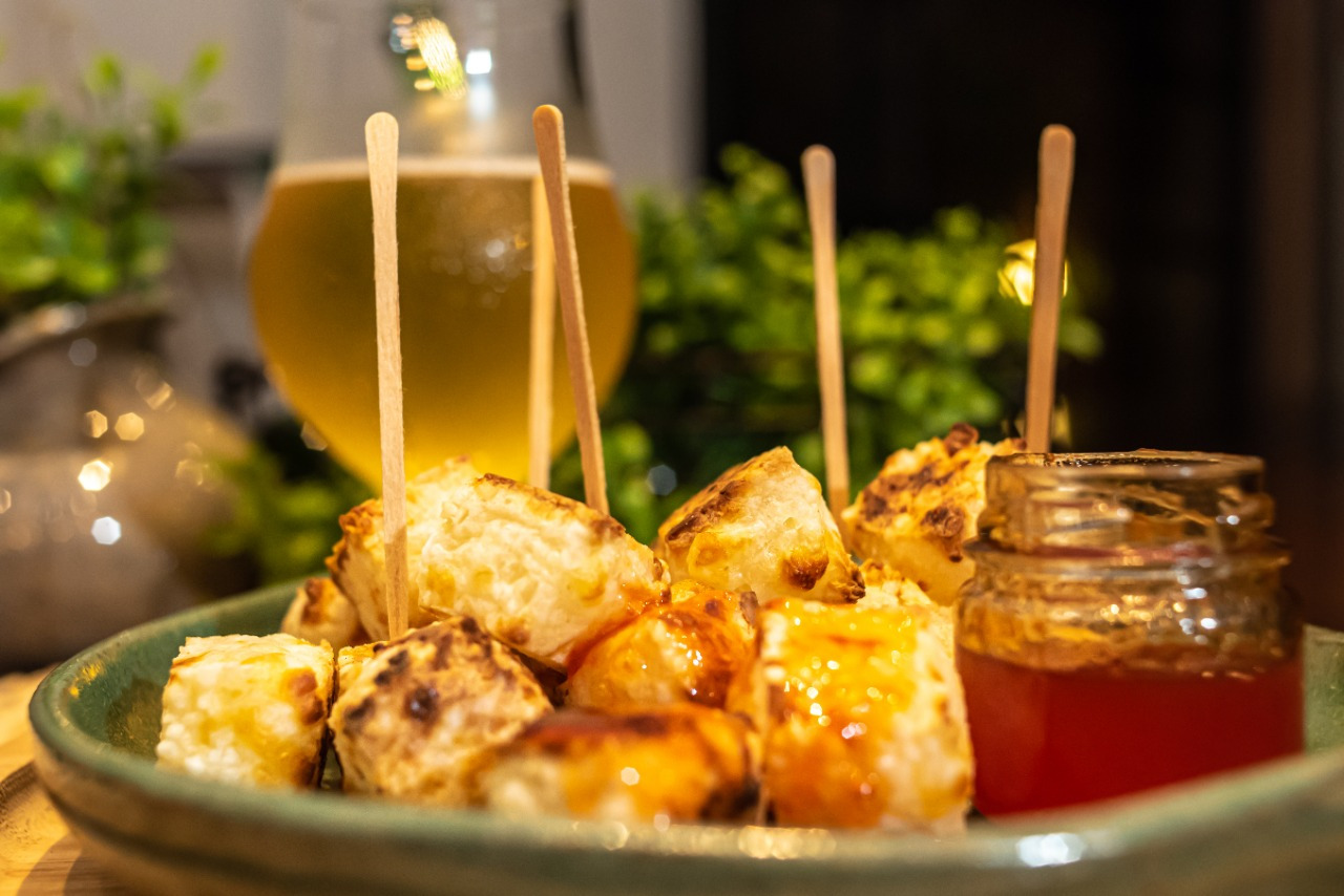 Massa a base de milho, recheada com queijo coalho cremoso e empanado com farinha crocante. A calda de melaço dá o toque especial no sabor!
